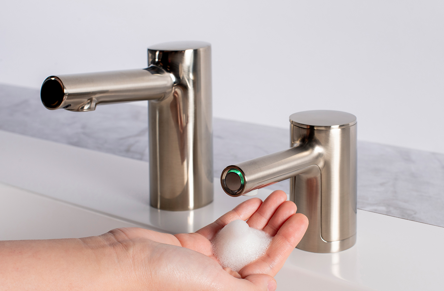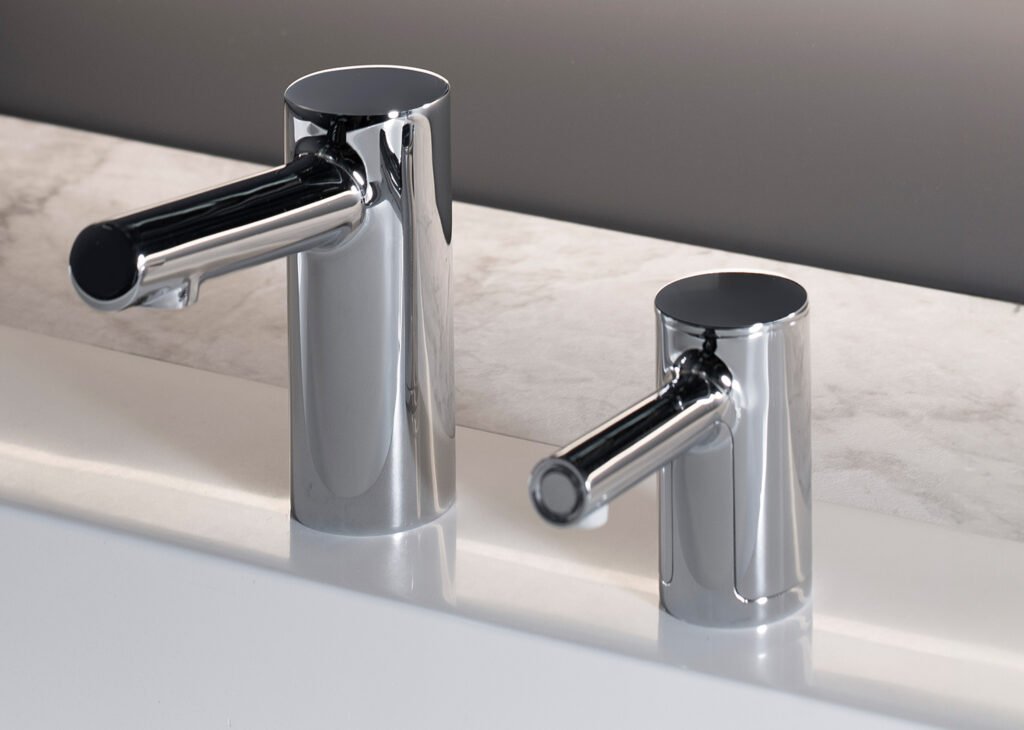 Our award winning automatic top-fill soap dispensers and matching faucets are a restroom game-changer.